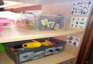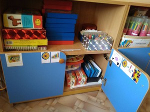 Для каждого вида творческой деятельности есть памятки, игрушкам, играм и книгам отведены собственные промаркированные картинками ящики и полочки.