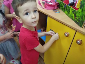 На данный момент группа вступила в первый этап проекта под названием «Бережём свою одежду и обувь». Основное место проведение – приёмная. Для оптимизации работы с детьми и родителями воспитателями были размещены в детских шкафах изображения алгоритмов одевания детей на прогулку и порядка складывания вещей в шкафу, конверты «Родительская почта», которые являются своеобразным экраном достижений ребёнка и служат для улучшения обратной связи между педагогом и родителем. В местах, доступных для обозрения, прикрепили подсказки - напоминания о правилах ухода за одеждой и обувью. Чтобы сделать окружающую среду ещё более безопасной, сделаны разметки в местах открывания дверей, развешаны таблички «Групповая комната» и «Буфетная». На входной двери расположилась табличка-благодарность за пользованиями бахилами для посетителей группы. Для поощрения успехов детей, воспитателями введён такой игровой приём, как смайлики Берегуша и Растеряша, служащий дополнительной мотивацией исполнения правил и заданий. Всё вышесказанное, направлено на достижение цели проекта и воспитания у детей бережливости, ответственности, трудолюбия, а также улучшения взаимодействия с родителями и организации рабочего пространства педагогов. Проект активно продолжается, и участники не собираются останавливаться на достигнутом.