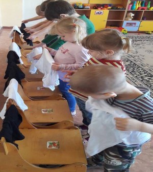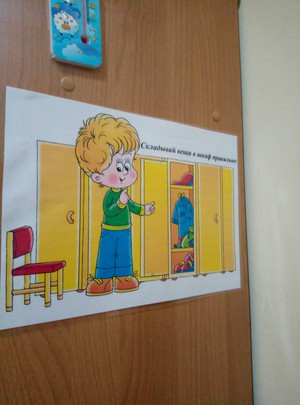 03.10.2019 воспитатели ДОО посетили группу компенсирующей направленности №8, где воспитатель Дремучева Т.А. продемонстрировала особый порядок в группе по системе организации бережливого производства 5S (сортировка – соблюдение порядка – систематическая уборка – стандартизация процессов – совершенствование порядка): в раздевалке на дверцах шкафчиков внутри висят картинки с алгоритмами размещения вещей в тёплый и холодный периоды. Для спортивной формы – открытая стойка с вешалками, в итоге футболки и шорты не мнутся, как раньше, когда они хранились в шкафчиках, и процесс одевания на физкультуру ускоряется.