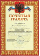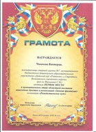 2. Почетная грамота начальника управления образования за создание условий для выявления и максимального развития способностей детей старшего дошкольного возраста и активного участия в городском празднике «До свиданья, детский сад!» (приказ № 359 от 10 мая 2018)