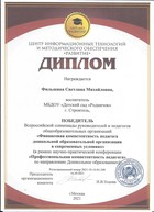 Фильшина Светлана Михайловна, Победитель Всероссийской олимпиады руководителей и педагогов общеобразовательных организаций «Финансовая компетентность педагога дошкольной образовательной организации в современных условиях» (регистрационный номер 2021-10-16-01-240 16.10.2021)