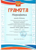 1 Команда «Родничок», 3 Место за активное участие в городской осенней спартакиаде среди воспитанников ДОО «Сильные, смелые, ловкие, умелые!», грамота начальника управления образования (приказ № 757 от 09.09.2021 г.)
