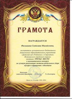 3. Грамота заведующего МБДОУ «Детский сад «Родничок» г. Строитель» за высокий профессионализм, компетентность, педагогический талант, преданность педагогической профессии и в связи с праздником Дня дошкольного работника (приказ от 25.09.2017 г. № 47)