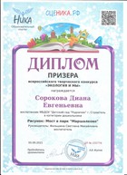2. Сорокова Диана, Призер Всероссийского творческого конкурса «Экология и мы» (05.09.2021)