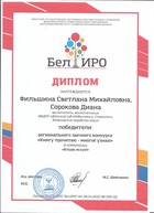 3. Сорокова Диана, Победитель регионального заочного конкурса «Книгу прочитаю-многое узнаю» (от 26.04.2022 г.)