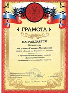 3. Фильшина Светлана Михайловна, Призер межмуниципального конкурса видеороликов «Мастер-класс педагога» (приказ от 26.10.2021 № 1044-ОД)