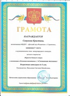 4 Сипунова Кристина, 3 Место в муниципальном этапе международного конкурса детского творчества «Красота Божьего мира» (приказ № 949 от 29.10.2021 г.)